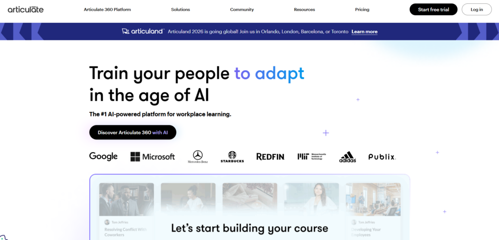 - Articulate Rise 360: responsive, block-based course builder.