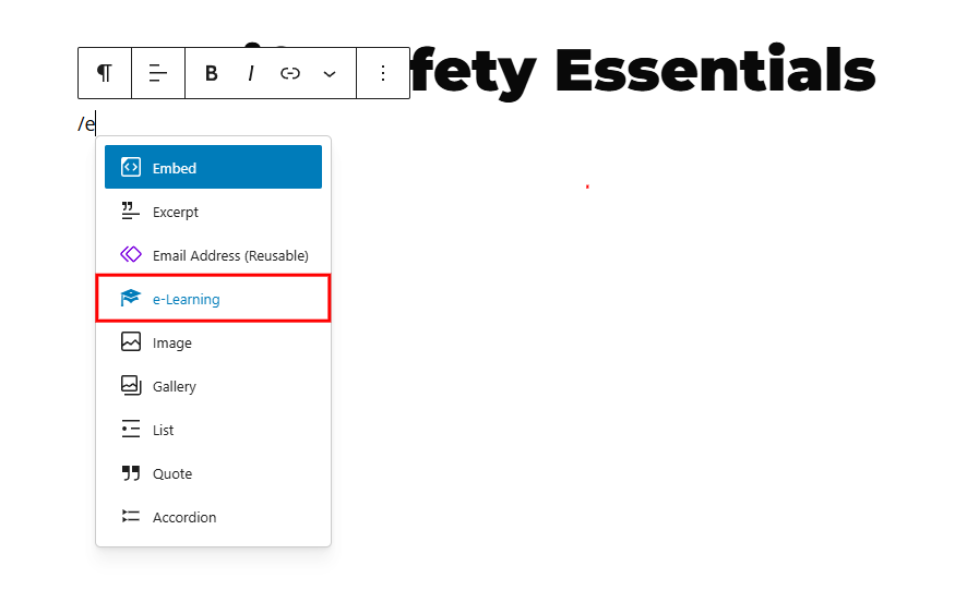 Step 3: Add the eLearning Block in WordPress