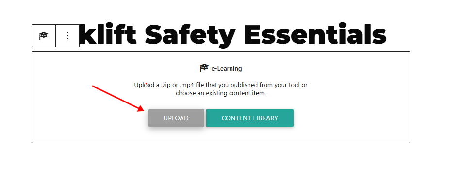 - Click Upload in the eLearning block