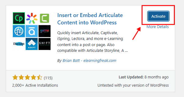 - Search for “Insert or Embed Articulate Content into WordPress”