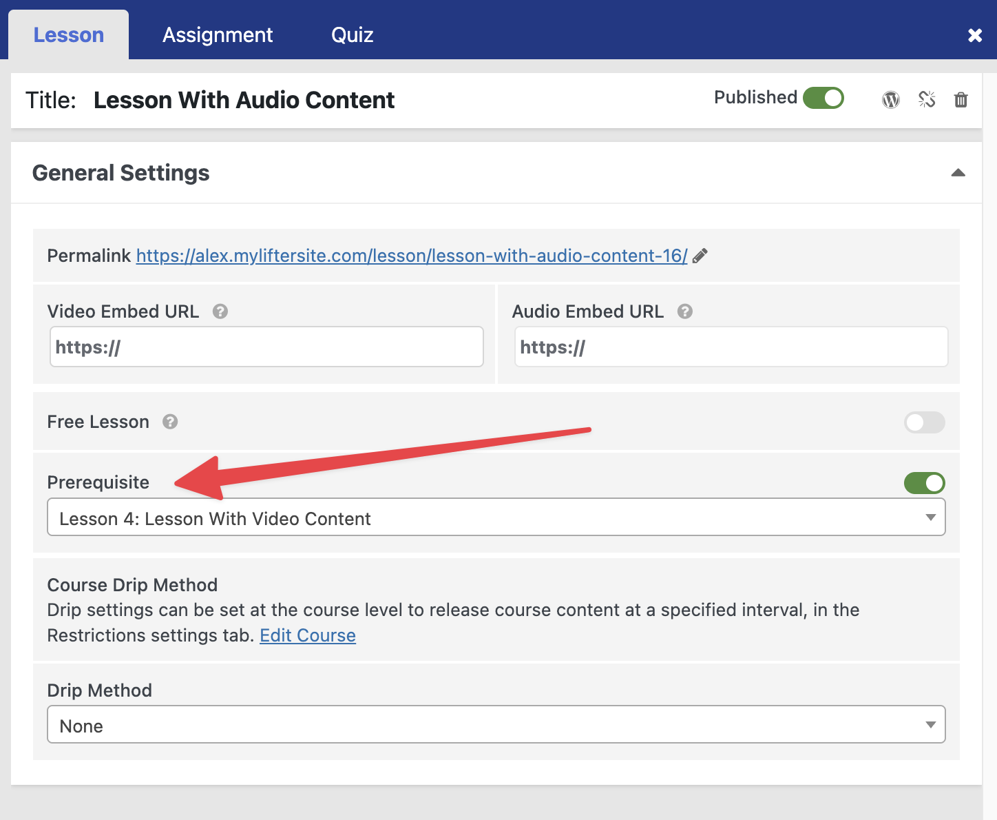 To prevent students from moving on before completing a lesson, you must use LifterLMS’s prerequisite feature. You can set the current lesson as a prerequisite for the next one. This prevents access to the next lesson until the current lesson is marked complete, which in turn requires full video playback.
