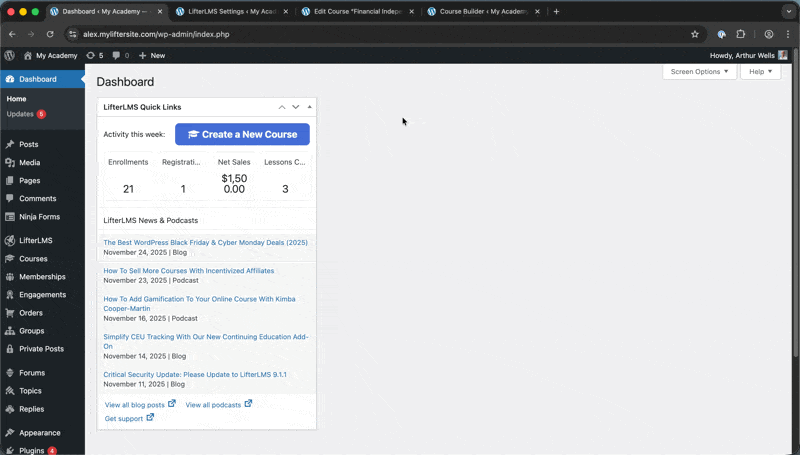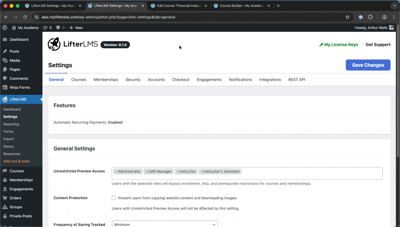 - Navigate to LifterLMS Settings: From your WordPress dashboard, go to LifterLMS > Settings.