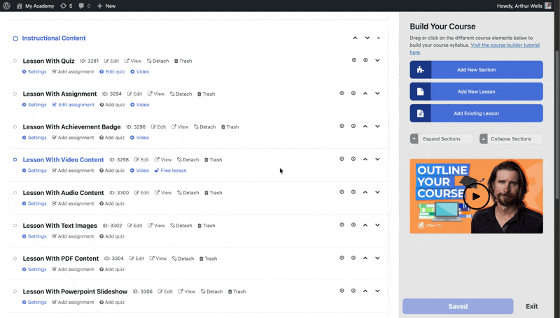 - Course-Specific Setting: To override the global setting for a specific course, edit the course and go to the Advanced Videos tab in the “Course Options” metabox. Here, you can enable or disable “Require Video Completion” for that particular course. Once you have made the necessary changes, click Save to save your changes.