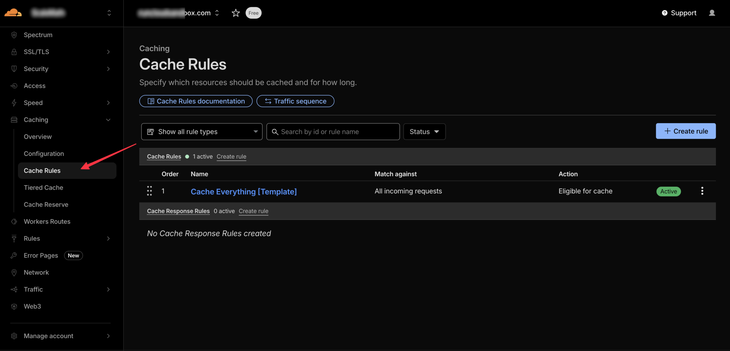 - Click the Create Cache Rule button.