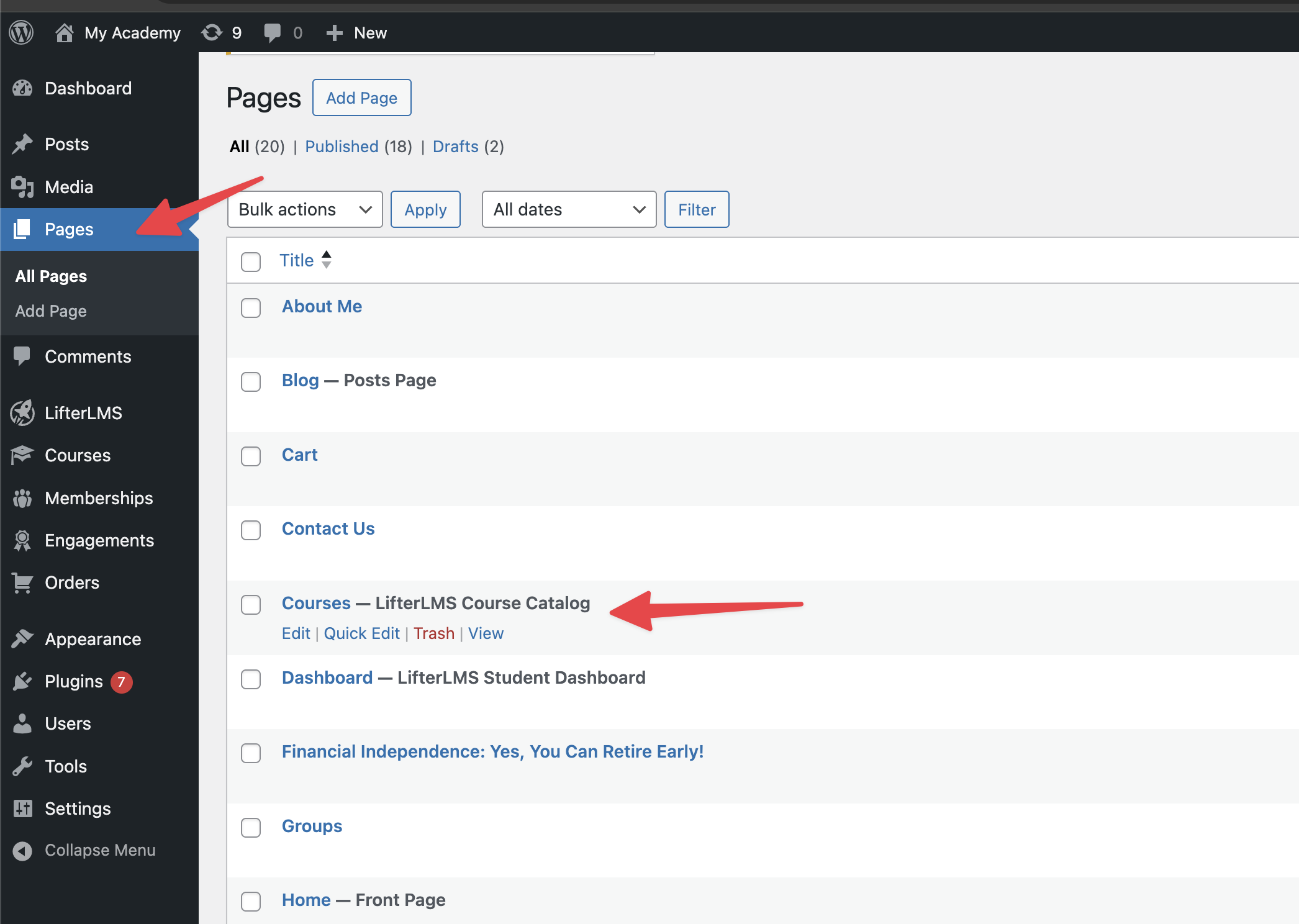 - Navigate to Dashboard > Pages.