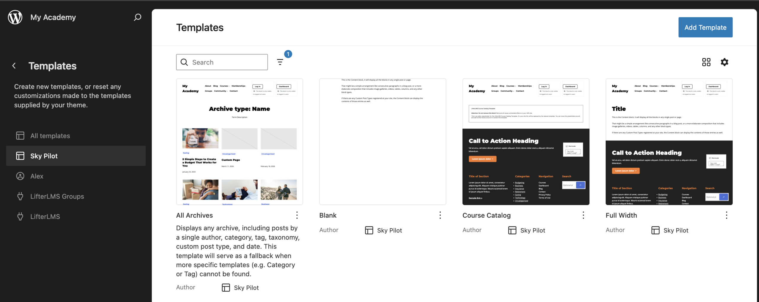 • A Single Post template affects all blog posts