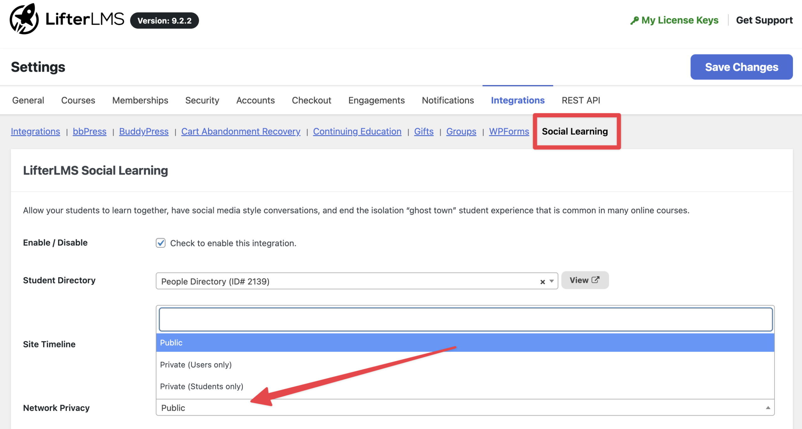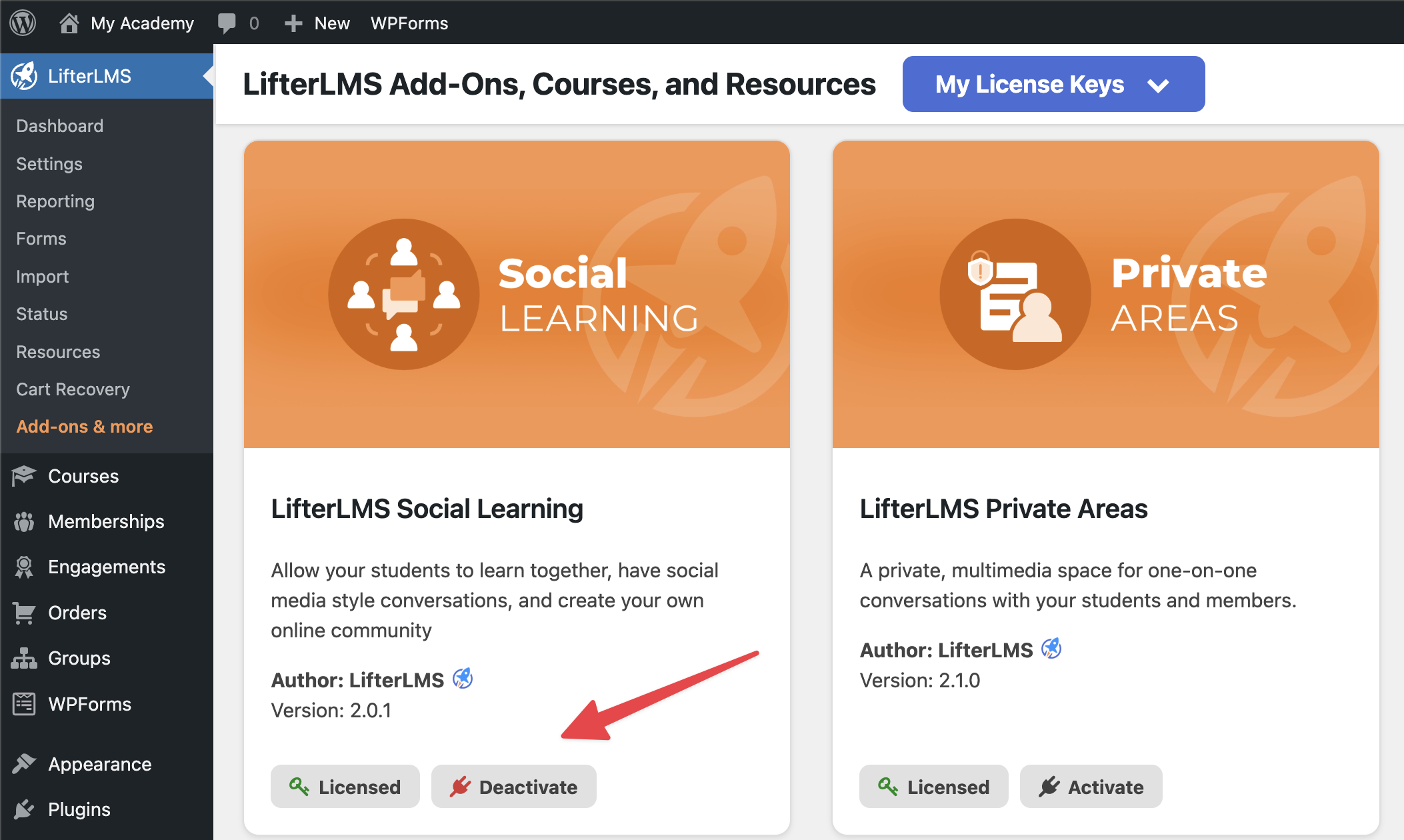 3. Click on “LifterLMS Social Learning”.