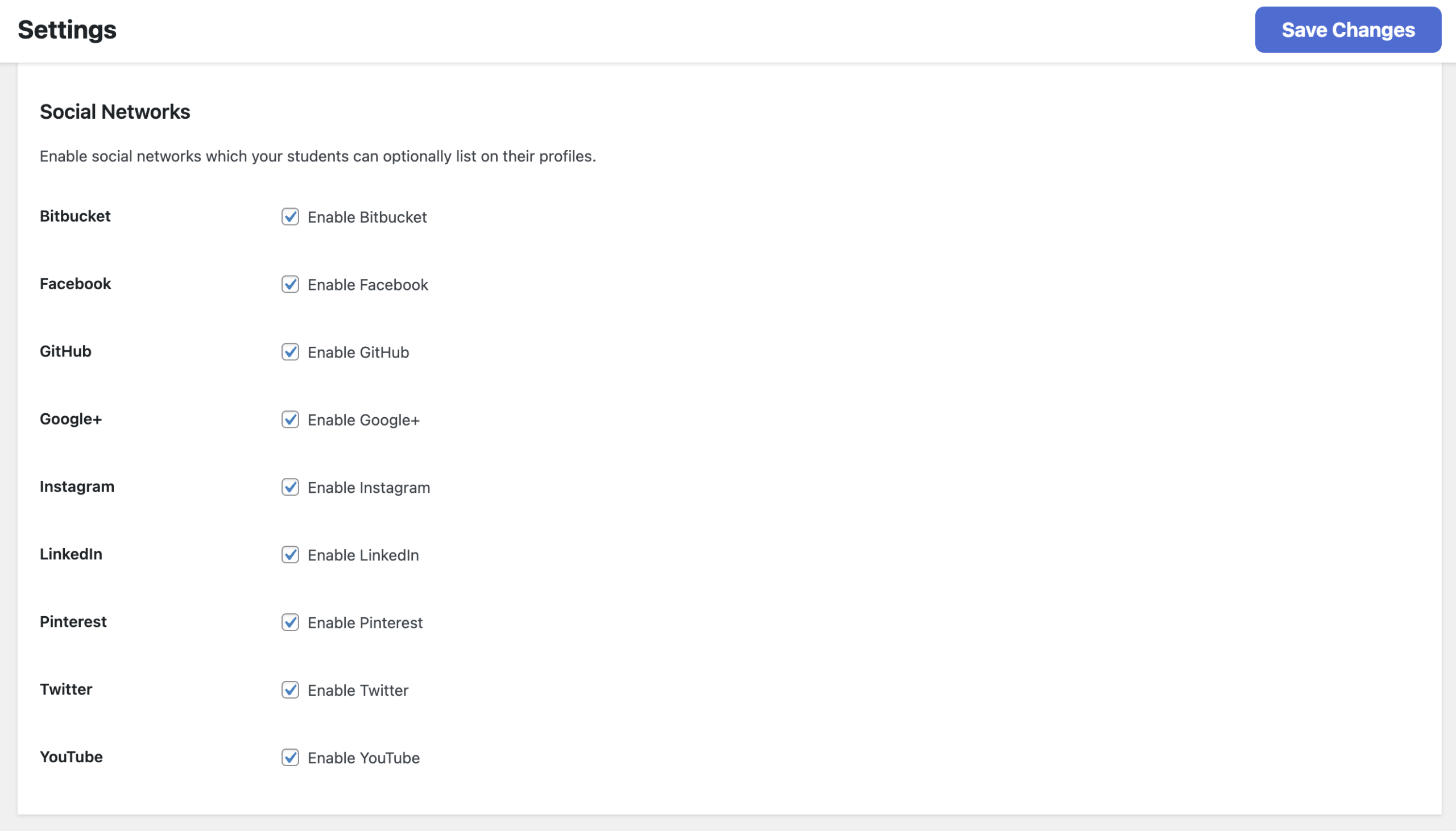 5. Check the box next to each social network you want to make available for your students.