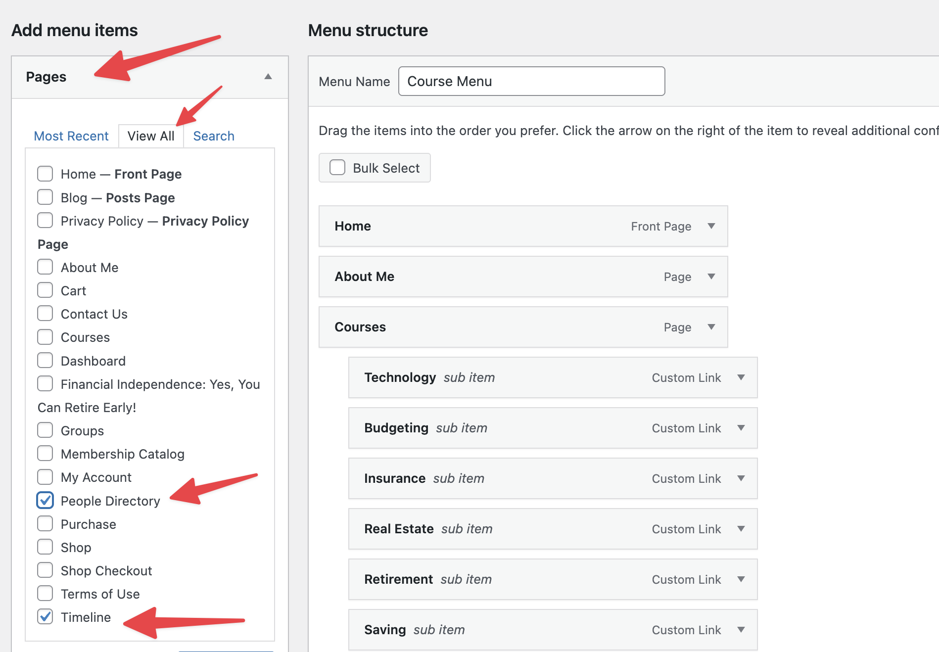2. After adding all the necessary menu items, you can rearrange them in your desired hierarchy by dragging and rearranging the menu items.