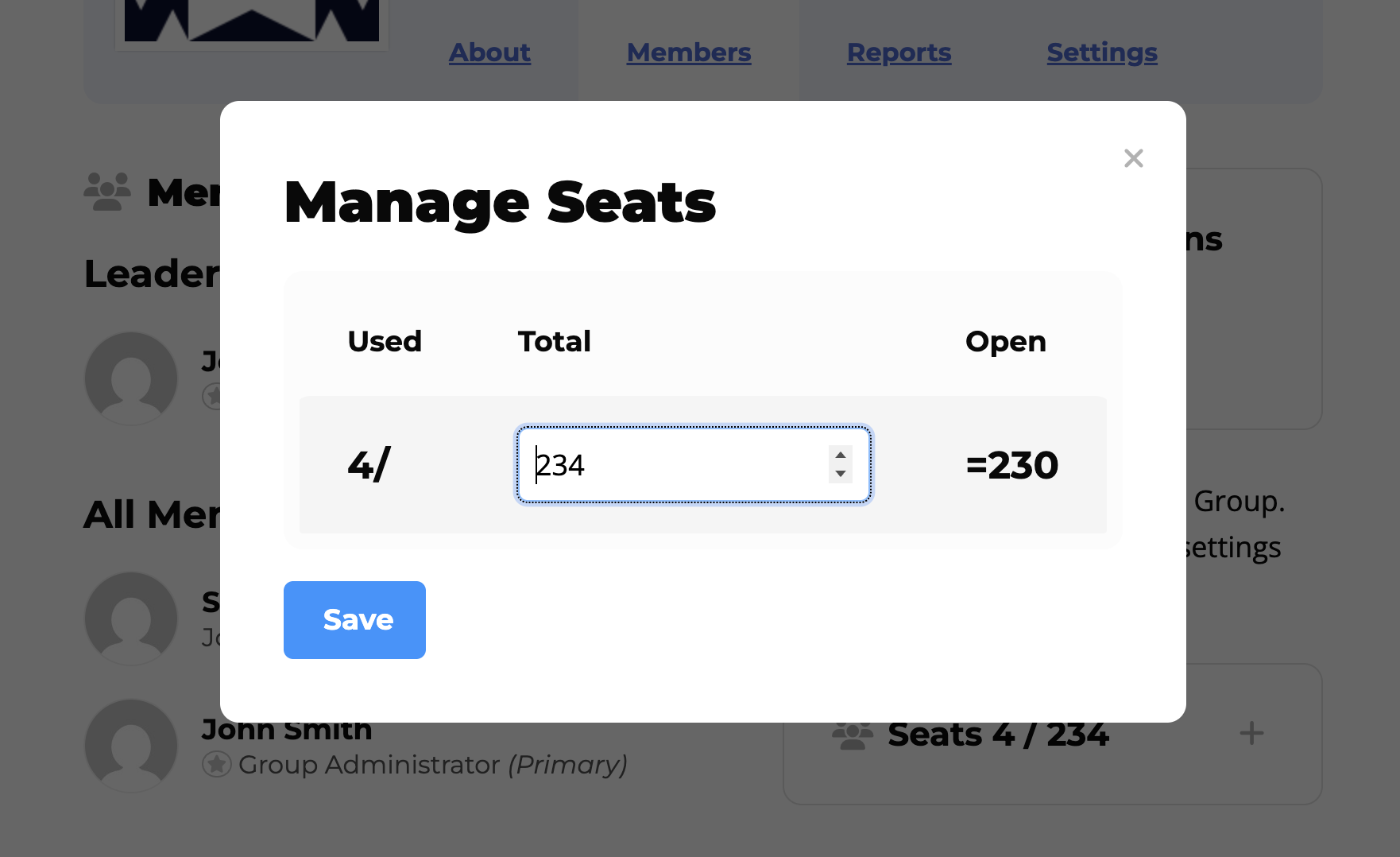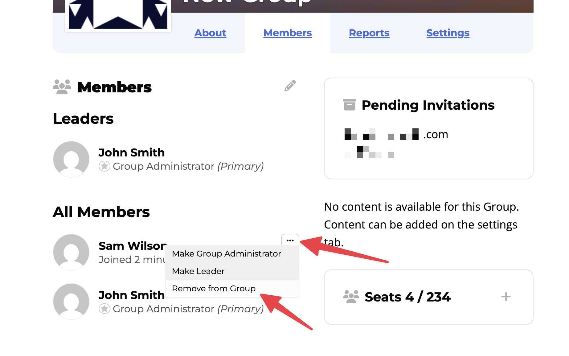 Before you send invitations, you must ensure your group has enough available seats. Each person you add occupies one seat.