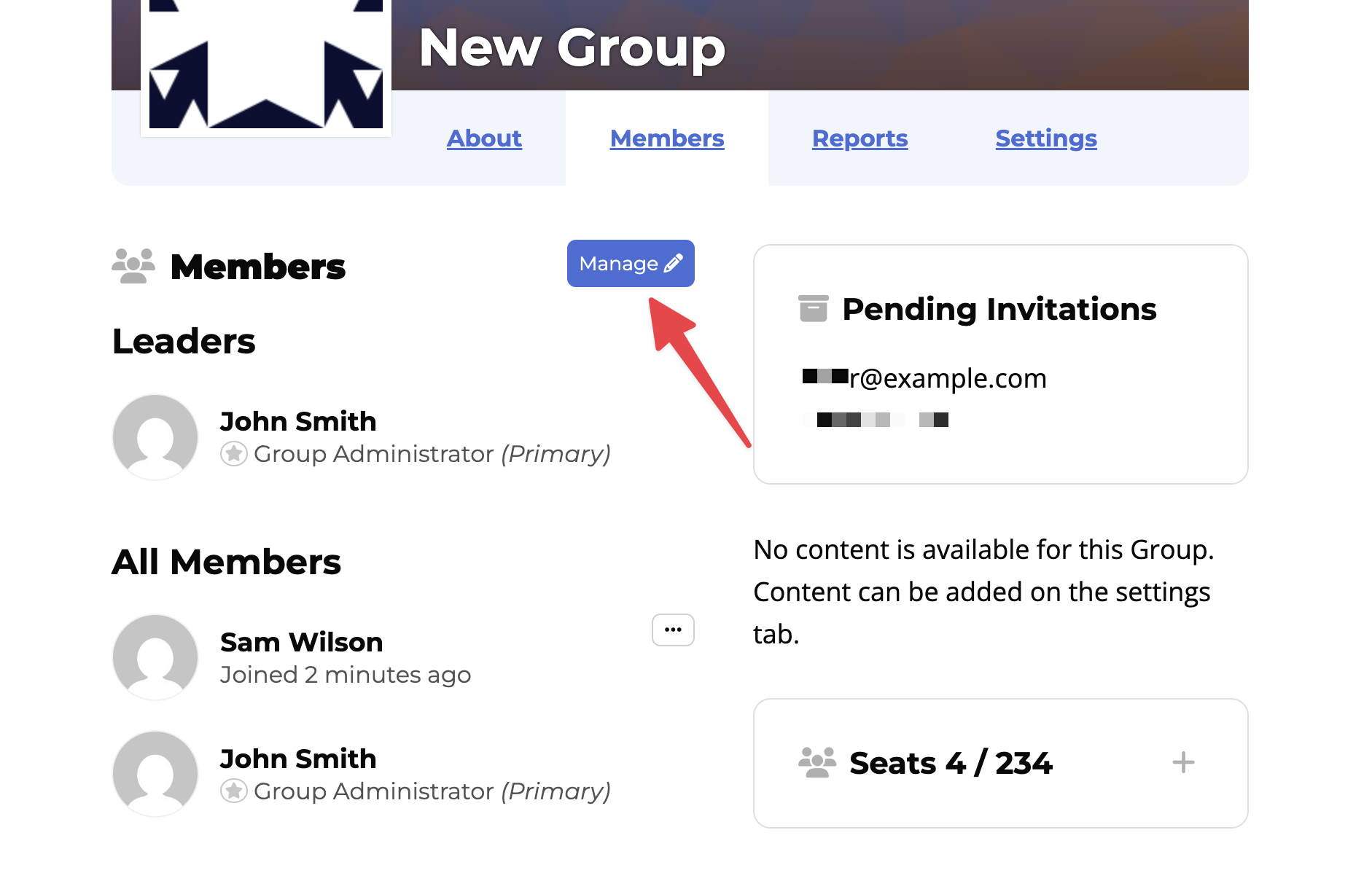 - Navigate to the management screen of your group page.