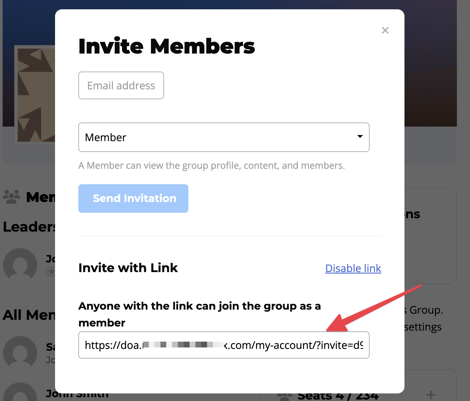 - Locate the “Invite with Link” section and make sure it is enabled.