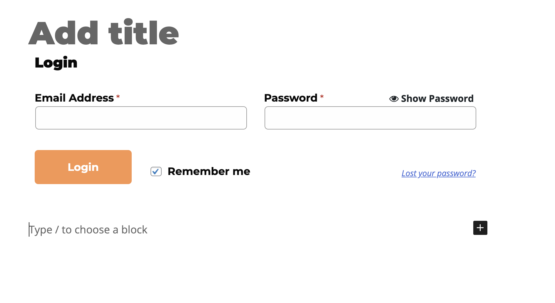 If you’re using the WordPress Block Editor, you can drop the LifterLMS Login Form Block onto any page or post. This is ideal for creating custom “Welcome” pages for your students.