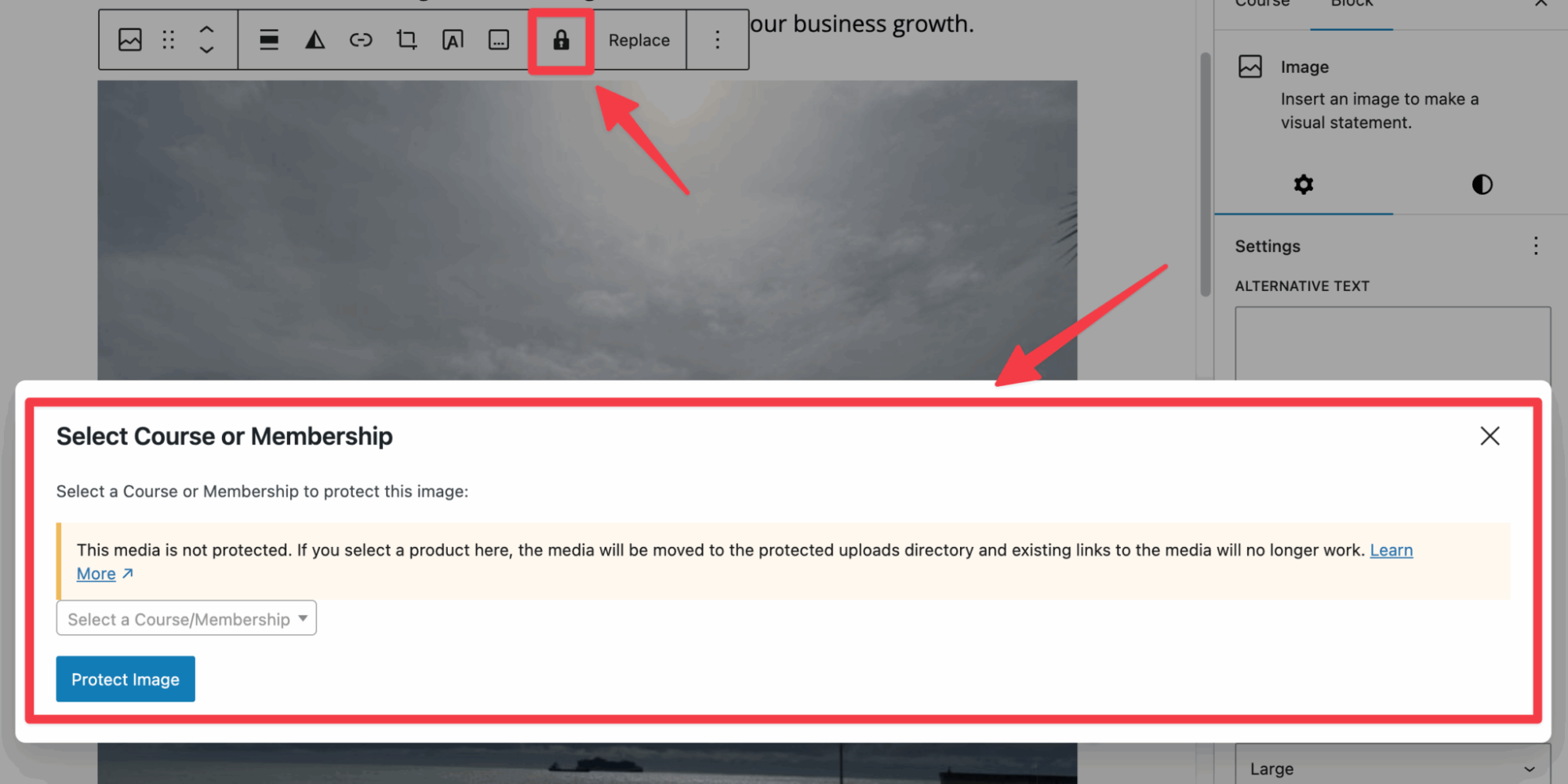 LifterLMS includes a built-in media protection system that restricts access to files, including videos, audio, documents, and images. When enabled, only logged-in users with the correct course or membership access can view or download protected files.