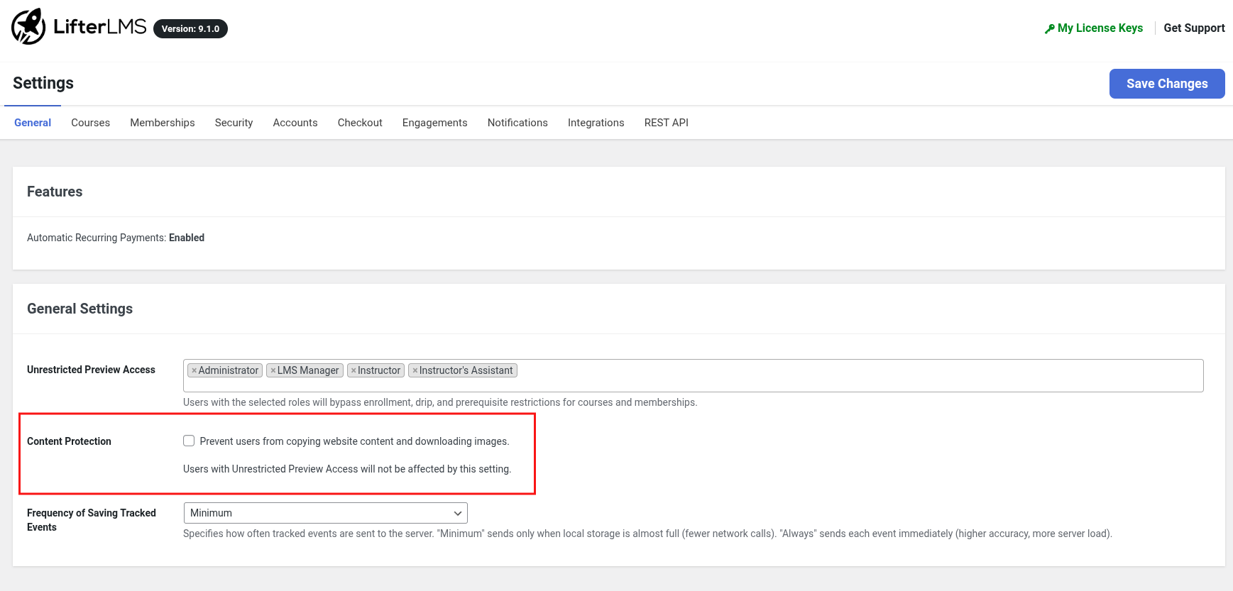 Media Protection is available in the core LifterLMS plugin. Some quiz-related image protection features require the Advanced Quizzes add-on.