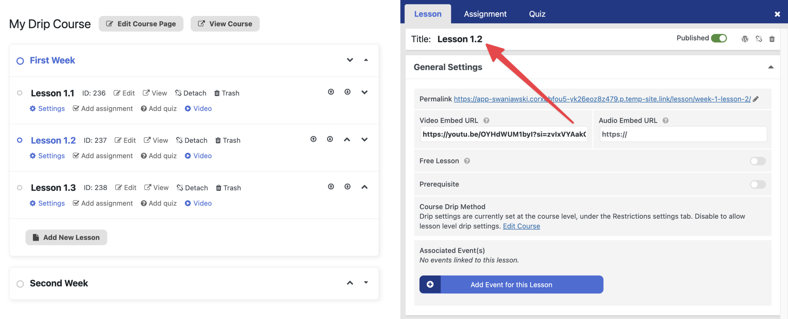 - Use a numbered system, such as naming the parent “Lesson 1” and the child lessons “Lesson 1.1” and “Lesson 1.2”.