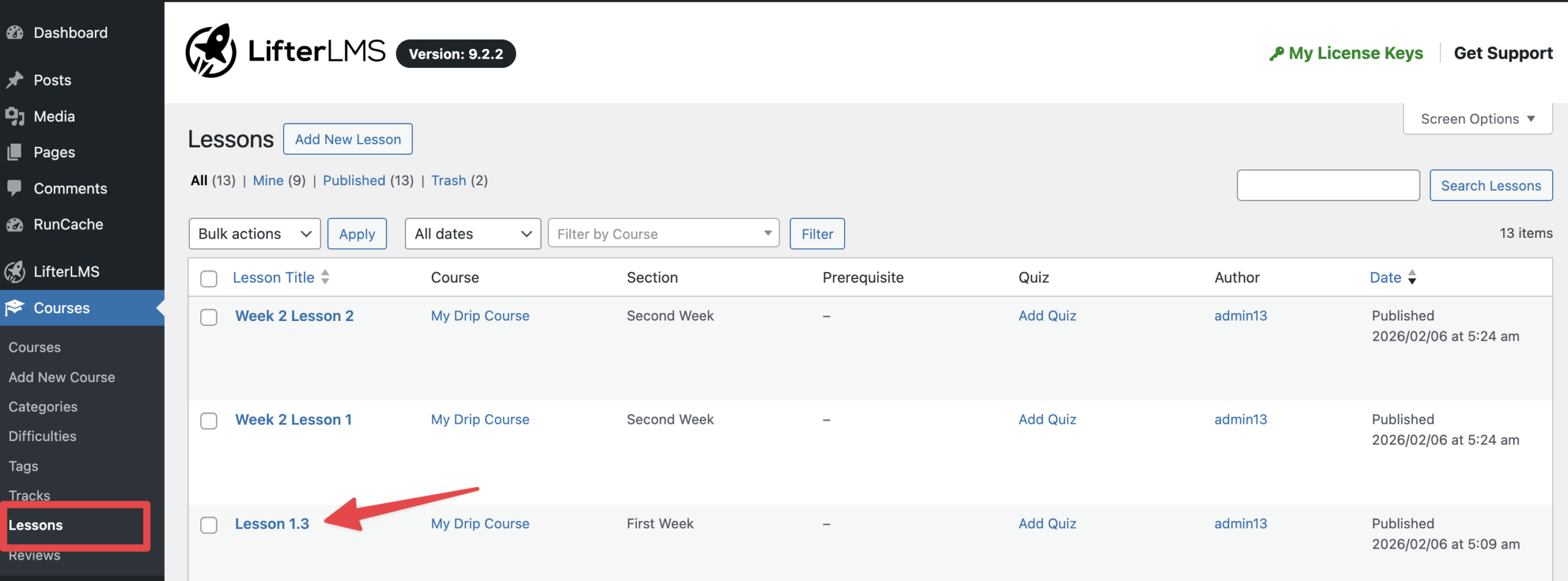 LifterLMS courses follow a strict hierarchy where lessons reside directly within a course. You cannot place a lesson inside another lesson.