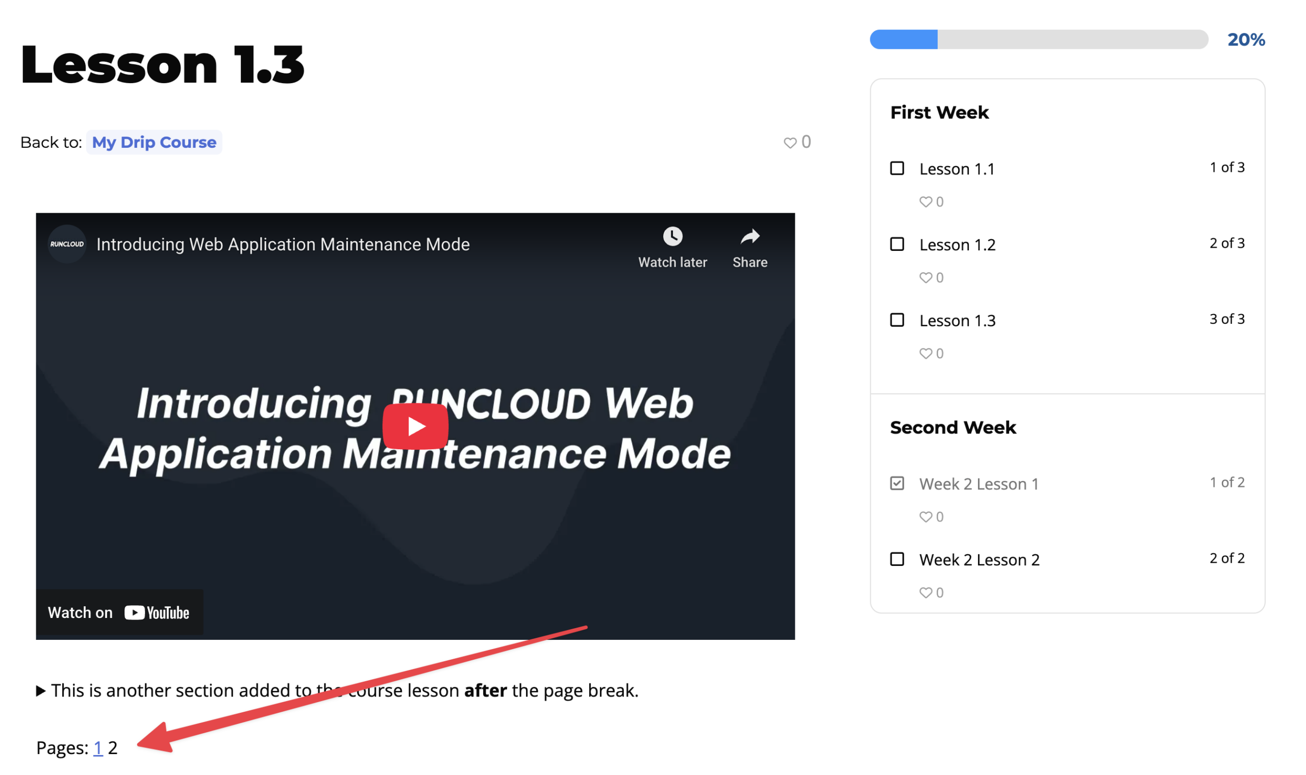 When a student views this lesson, LifterLMS will automatically create a paginated view, allowing the student to navigate through different sub-pages within that single lesson.