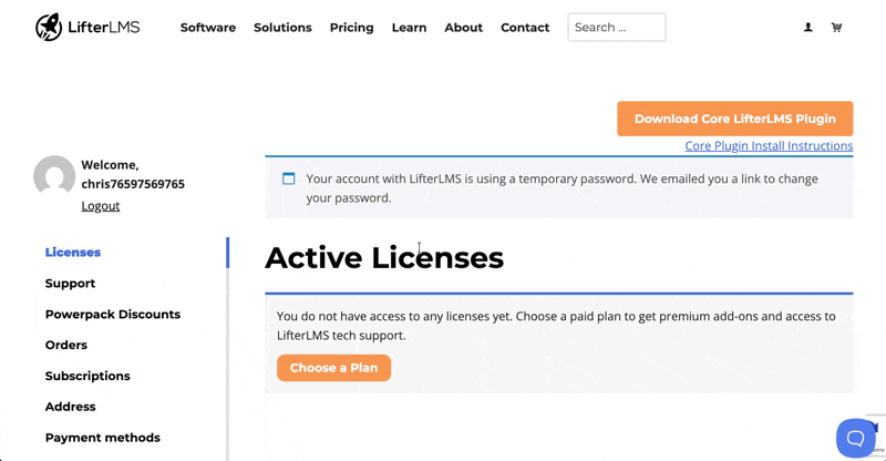 Step 2. If you don’t already have an account on the LifterLMS website, Download the current version of LifterLMS by creating a free account on the LifterLMS website, and clicking the Download Core LifterLMS Plugin button.
