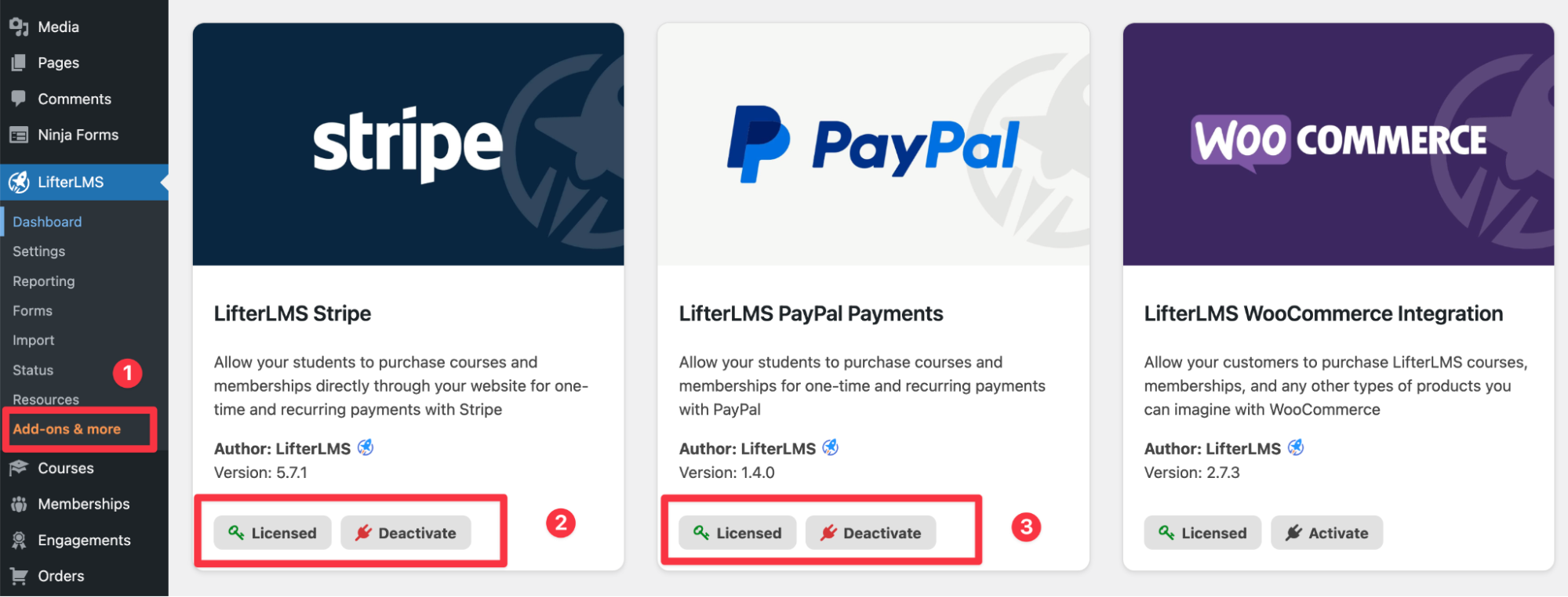 To install these, you’ll first need to add your license key to your LifterLMS settings. For instructions on how to do this, please see our help document on how to add your license key to LifterLMS.